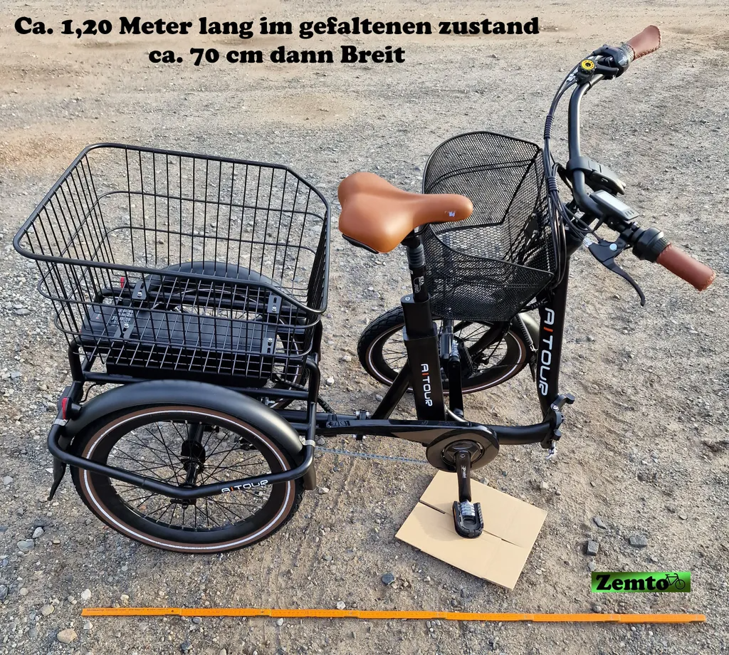 Elektro Dreirad Trike 3 Gang, Tiefeinstieg 20 Zoll schwarz, Fahrfertig, inkl. Kettenschloss und Rückspiegel