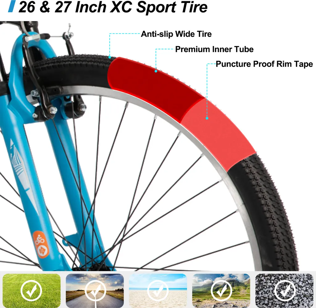 WÄHLEN SIE DIE IDEALE GRÖSSE– Das 26-Zoll-Mountainbike für Erwachsene ist sowohl für Männer als auch für Frauen geeignet und passt Fahrern mit einer Größe von 1,60 bis 1,80 m, während die 27,5-Zoll-Variante für Fahrer mit einer Größe von 1,70 bis 1,85 m geeignet ist.